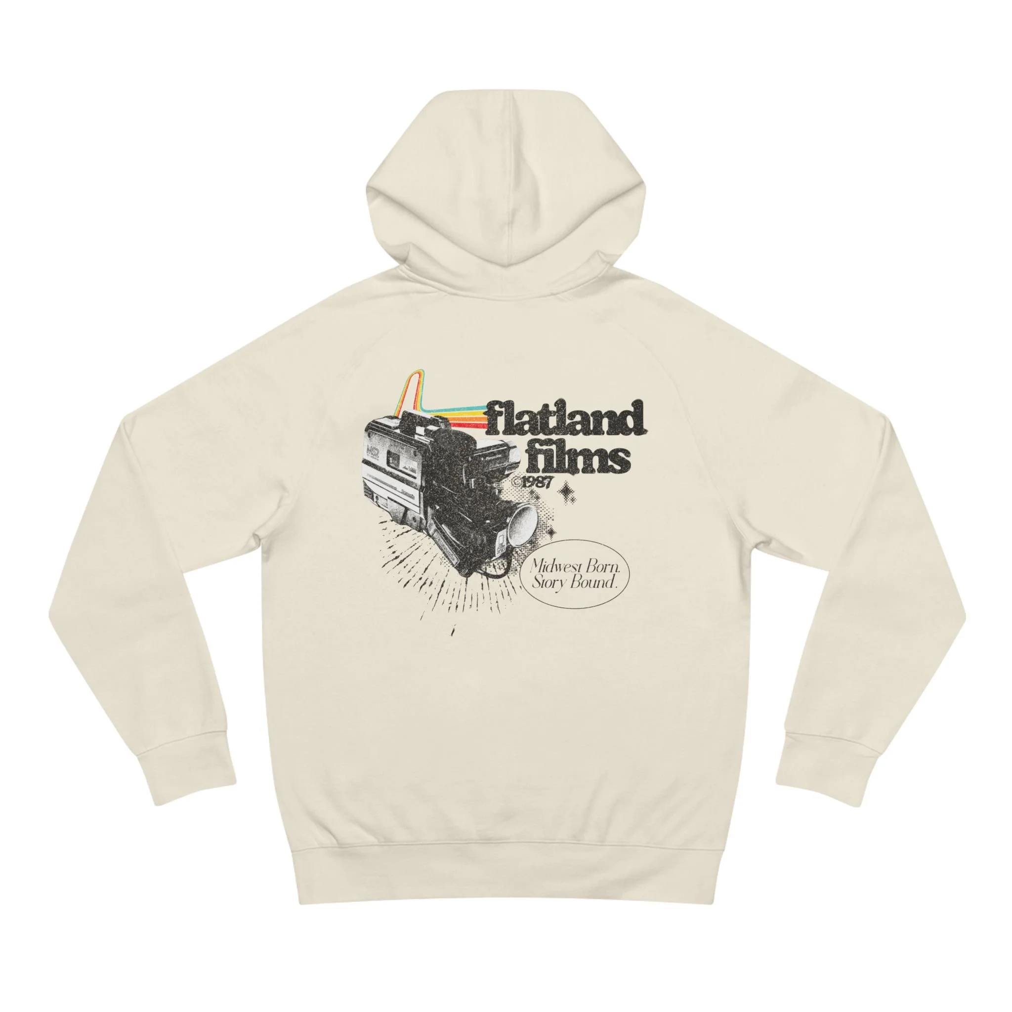 This hoodie is a nod to where it all started. A VHS camcorder graphic on the back, a throwback Flatland Films logo on the front. Somewhere along the way, the home videos turned into something more; but the reason we hit record never really changed.